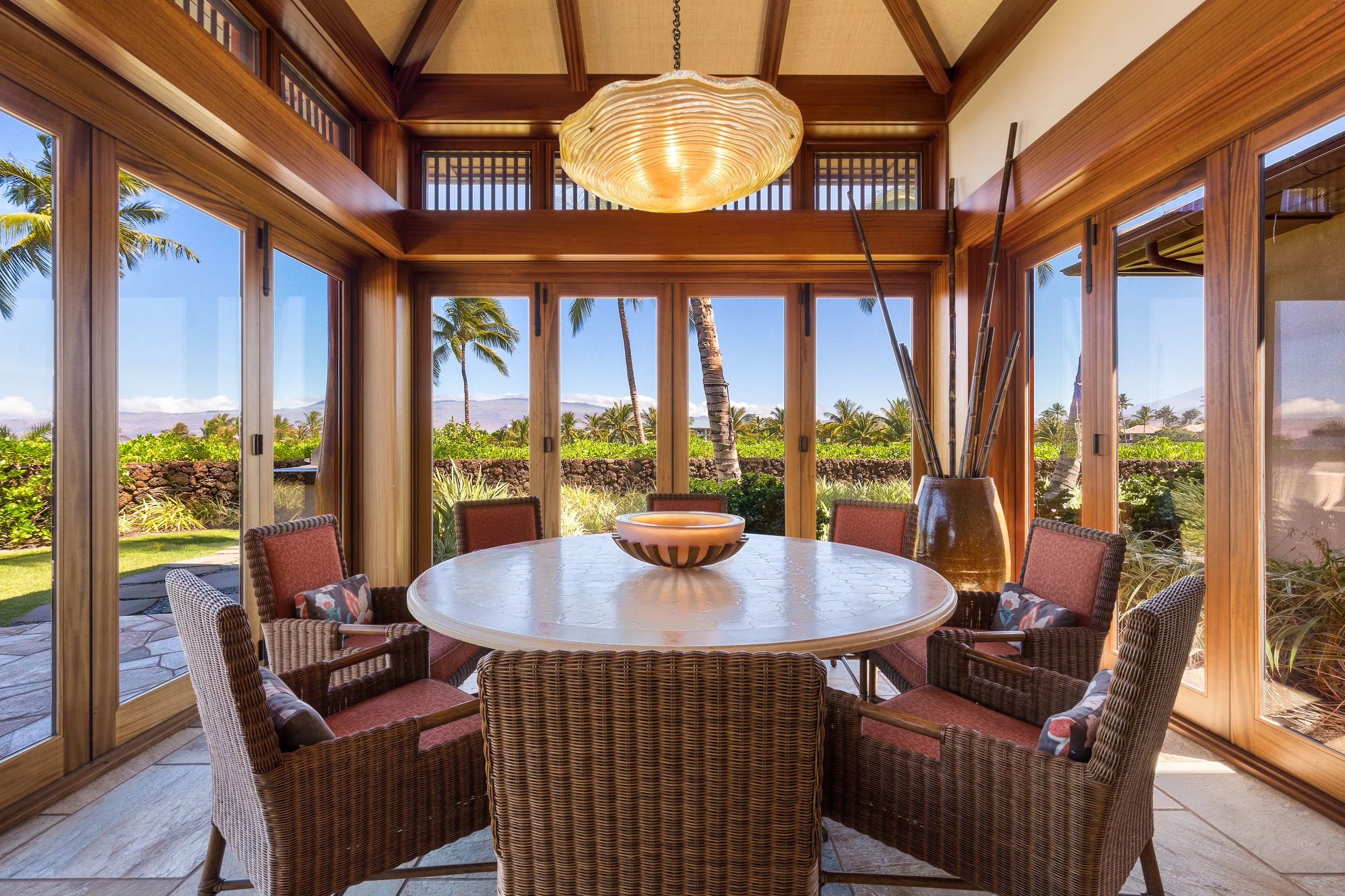 Experience the utmost exclusivity at this rare gem nestled within the prestigious gated enclave of Kauna'oa in Mauna Kea Resort. Kauna’oa 25 offers a remarkable blend of elegance and seclusion, this exceptional villa showcases five complete suites, with the private Master suite gracefully positioned at the North end of the property, providing a serene retreat separate from the four other suites located at the South end. A captivating 50-foot pool, invigorating spa, and cozy fire pit serve as the centerpiece of the meticulously landscaped grounds, adorned with lush palm trees and a spacious lawn. Embodying a contemporary aesthetic, the home boasts a stylish great room seamlessly connected to the lanai and pool area through a well-appointed kitchen. For the ultimate in entertainment, a state-of-the-art media room awaits, featuring a colossal screen and plush theater seats for unparalleled comfort during movie nights or TV binges. Indulge in the privileges of the private club, just a one-minute walk away, where guests can revel in the amenities, including a sprawling infinity pool with lounges and umbrellas, an oversized hot tub, a fitness center, a three-hole practice course designed by the esteemed Weiskopf Design Group, a fully equipped kitchen, inviting pavilions, and BBQ facilities.